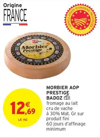 Actuellement en offre chez Intermarché : Morbier aop prestige badoz ✅ Valable du 17-02 au 1-03.