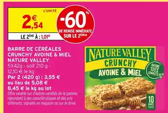 Nature valley barre de céréales crunchy avoine & miel : offres et promos Intermarché à découvrir