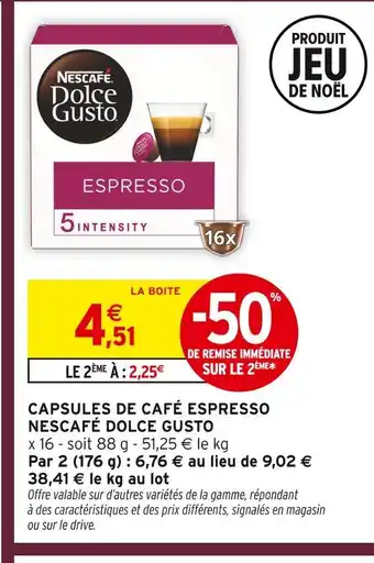 Offre Nescafé dolce gusto capsules de café espresso chez Intermarché
