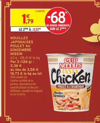 Actuellement en offre chez Intermarché : Nissin nouilles japonaises poulet au gingembre ✅ Valable du 10-02 au 22-02.