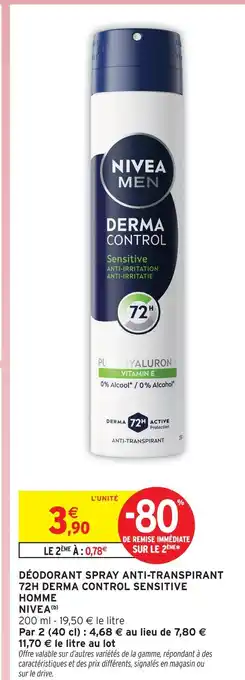 Nivea déodorant spray anti-transpirant 72h derma control sensitive homme : offres et promos Intermarché à découvrir