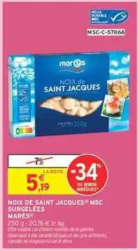 Offre NOIX DE SAINT JACQUES MSC SURGELÉES MAREE chez Intermarché