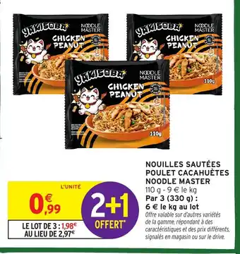 Actuellement en offre chez Intermarché : NOODLE MASTER Nouilles sautées poulet cacahuètes ✅ Valable du 13-01 au 25-01.