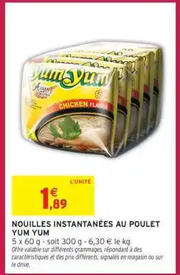 Offre NOUILLES INSTANTANÉES AU POULET YUM YUM chez Intermarché