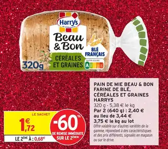 Actuellement en offre chez Intermarché : Pain de mie beau & bon farine de blé céréales et graines harrys ✅ Valable du 23-12 au 31-12.