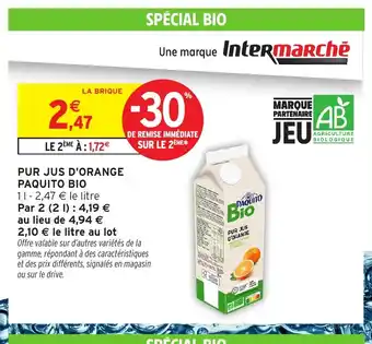 PAQUITO BIO Pur jus d'orange offres et promotions en ligne chez Intermarché