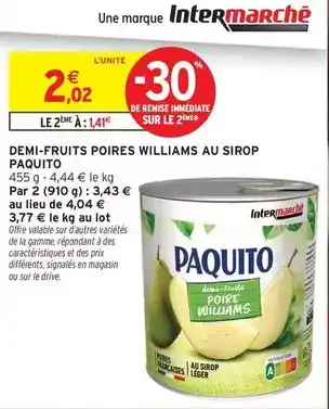 Paquito - demi-fruits poires williams au sirop offres et promotions en ligne chez Intermarché