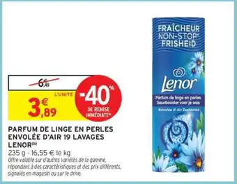 Offre PARFUM DE LINGE EN PERLES ENVOLÉE D'AIR 19 LAVAGES LENOR chez Intermarché