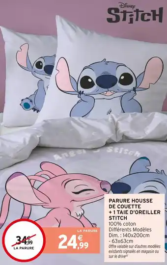 Parure housse de couette + 1 taie d'oreiller stitch : offres et promos Intermarché à découvrir