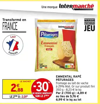 Pâturages emmental râpé offres et promotions en ligne chez Intermarché