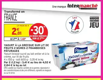 Découvrez les produits les moins chers parmi toutes les offres ! Si vous voulez savoir si Intermarché propose la meilleure remise pour PÂTURAGES Yaourt à la grecque sur lit de fruits 2 mûres 2 framboises, comparez-la sur la page thèmes ou avec d'autres magasins.