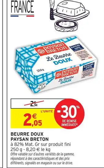 Actuellement en offre chez Intermarché : Paysan breton beurre doux ✅ Valable du 17-02 au 22-02.