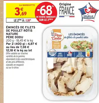 Actuellement en offre chez Intermarché : PÈRE DODU Émincés de filets de poulet rôtis nature ✅ Valable du 13-01 au 25-01.