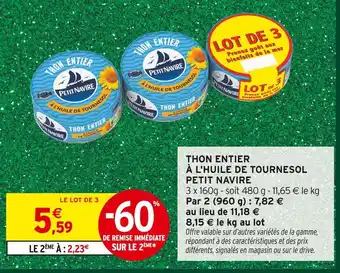 Offre Petit navire thon entier à l'huile de tournesol chez Intermarché