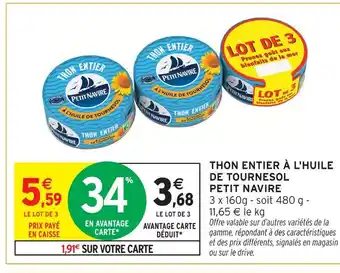 Actuellement en offre chez Intermarché : Petit navire thon entier à l'huile de tournesol ✅ Valable du 27-01 au 8-02.