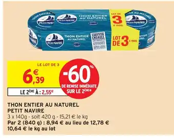 Petit navire thon entier au naturel : offres et promos Intermarché à découvrir