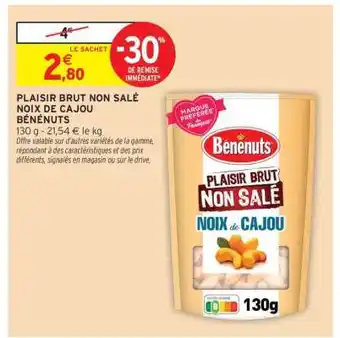Actuellement en offre chez Intermarché : PLAISIR BRUT NON SALÉ NOIX DE CAJOU BÉNÉNUTS ✅ Valable du 24-02 au 8-03.