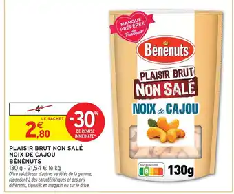 Plaisir brut non salé noix de cajou offres et promotions en ligne chez Intermarché