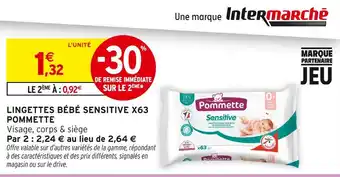 Actuellement en offre chez Intermarché : Pommette lingettes bébé sensitive x63 ✅ Valable du 6-01 au 18-01.
