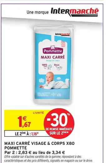 Actuellement en offre chez Intermarché : Pommette maxi carré visage & corps x80 ✅ Valable du 3-02 au 15-02.