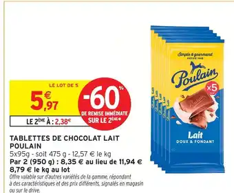 Actuellement en offre chez Intermarché : Poulain tablettes de chocolat lait ✅ Valable du 3-03 au 15-03.