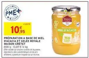 Offre PRÉPARATION A BASE DE MIEL D'ACACIA ET GELÉE ROYALE MAISON CRÉTET chez Intermarché