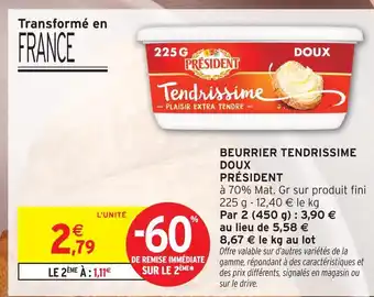 Offre Président beurrier tendrissime doux chez Intermarché