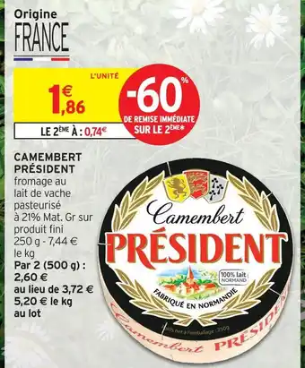 Offre Président camembert chez Intermarché