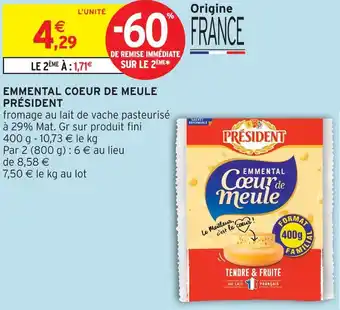 Actuellement en offre chez Intermarché : Président emmental coeur de meule ✅ Valable du 3-03 au 15-03.