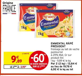 Actuellement en offre chez Intermarché : Président emmental râpé fondant ✅ Valable du 13-01 au 25-01.