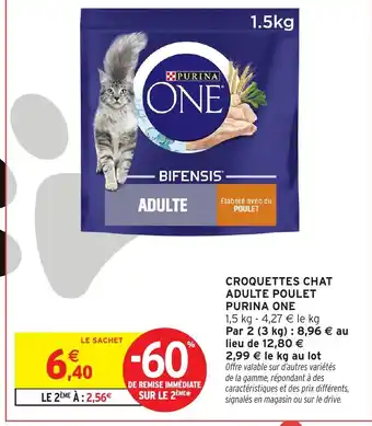 Actuellement en offre chez Intermarché : PURINA ONE Croquettes chat adulte poulet ✅ Valable du 13-01 au 25-01.