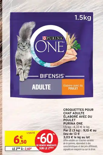Actuellement en offre chez Intermarché : Purina one croquettes pour chat adulte élaboré avec du poulet ✅ Valable du 24-02 au 8-03.
