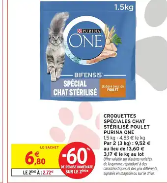 PURINA ONE Croquettes spéciales chat stérilisé poulet offres et promotions en ligne chez Intermarché