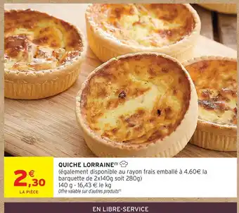 En plus de l'offre Quiche lorraine, Intermarché propose une large gamme de produits. Consultez le Catalogue Intermarché hebdomadaire pour découvrir les meilleures offres et promotions. En plus de Quiche lorraine, il y a aussi : Quiche lorraine, QUICHE LORRAINE & Quiche lorraine marie.