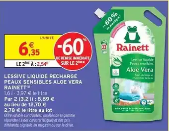 Actuellement en offre chez Intermarché : Rainett - lessive liquide recharge peaux sensibles aloe vera ✅ Valable du 6-01 au 18-01.