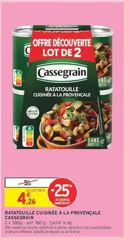 Ratatouille Cuisinée À La Provençale Cassegrain offres et promotions en ligne chez Intermarché