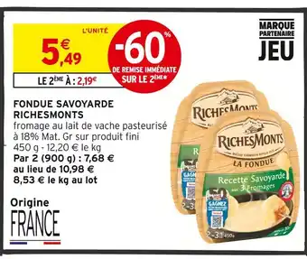 Actuellement en offre chez Intermarché : Richesmonts fondue savoyarde ✅ Valable du 13-01 au 25-01.