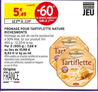Actuellement en offre chez Intermarché : Richesmonts fromage pour tartiflette nature ✅ Valable du 13-01 au 25-01.