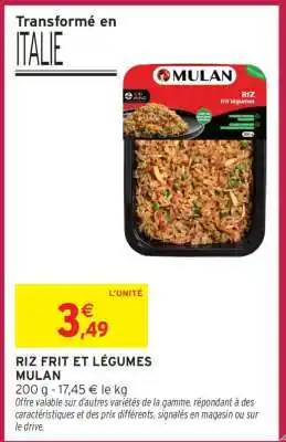 Actuellement en offre chez Intermarché : RIZ FRIT ET LÉGUMES MULAN ✅ Valable du 17-02 au 22-02.