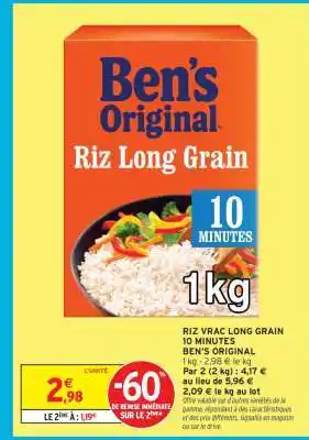 Offre RIZ VRAC LONG GRAIN 10 MINUTES chez Intermarché