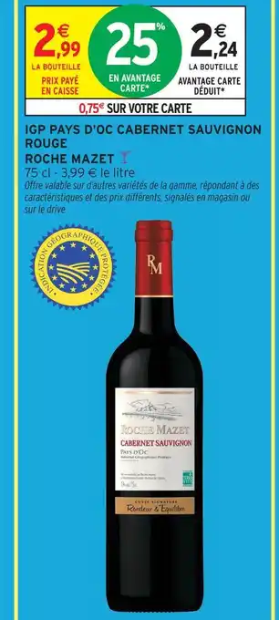 Actuellement en offre chez Intermarché : Roche mazet igp pays d'oc cabernet sauvignon rouge ✅ Valable du 20-01 au 1-02.
