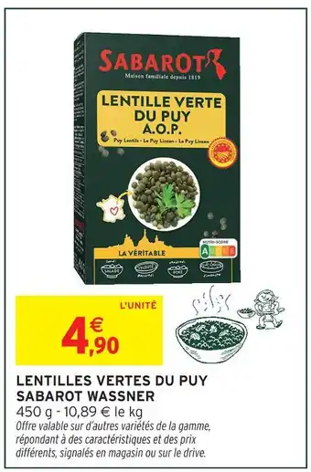 Sabarot lentilles vertes du puy a.o.p offres et promotions en ligne chez Intermarché
