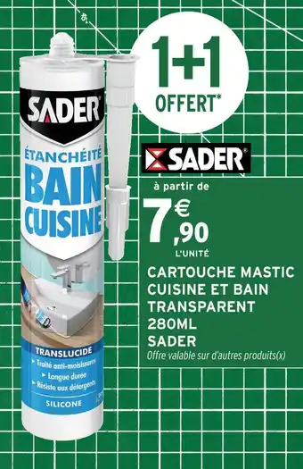 Actuellement en offre chez Intermarché : Sader cartouche mastic cuisine et bain transparent 280ml ✅ Valable du 3-02 au 15-02.