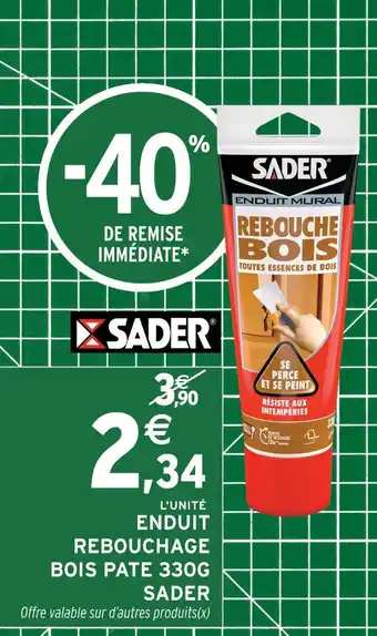 Actuellement en offre chez Intermarché : Sader enduit rebouchage bois pâte 330g ✅ Valable du 3-02 au 15-02.