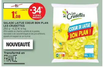 Actuellement en offre chez Intermarché : SALADE LAITUE COEUR BON PLAN LES CRUDETTES ✅ Valable du 24-02 au 8-03.