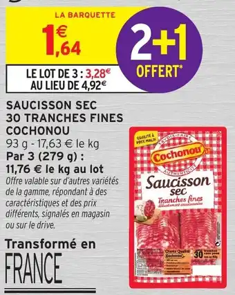 Actuellement en offre chez Intermarché : Saucisson sec 30 tranches fines cochonou ✅ Valable du 23-12 au 31-12.