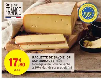 Actuellement en offre chez Intermarché : Schmidhauser raclette de savoie igp ✅ Valable du 17-02 au 22-02.