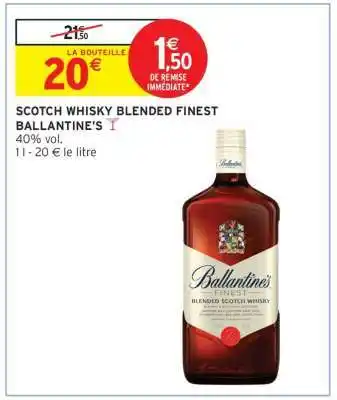 Actuellement en offre chez Intermarché : SCOTCH WHISKY BLENDED FINEST BALLANTINE'S ✅ Valable du 14-04 au 26-04.