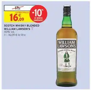 Actuellement en offre chez Intermarché : SCOTCH WHISKY BLENDED WILLIAM LAWSON'S ✅ Valable du 3-03 au 15-03.