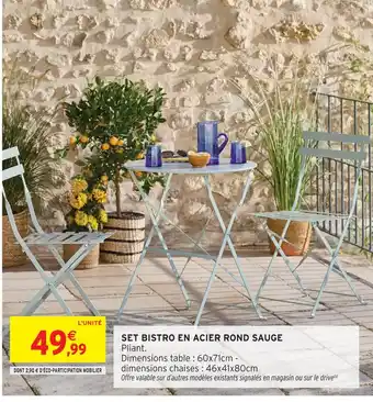 Actuellement en offre chez Intermarché : Set bistro en acier rond sauge ✅ Valable du 21-04 au 3-05.